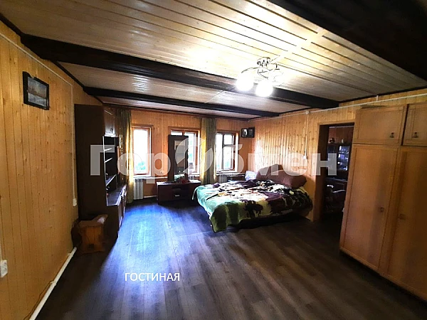 Одноэтажный дом, ПЯТИСТЕНКА, площадью 110м кв., с возможностью сделать 2 этаж ,из бревна и кирпича ,облицован сайдингом. Скважина, септик.